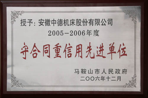 我公司成為馬鞍山市合同信用協(xié)會成立大會的理事單位,同時被市政府授予馬鞍山市2005-2006年度守合同重信用先進(jìn)單位稱號。