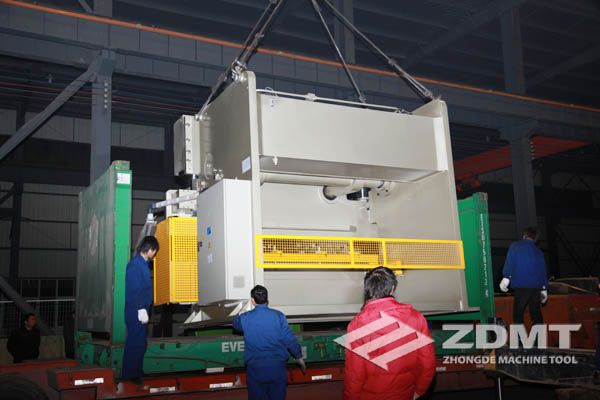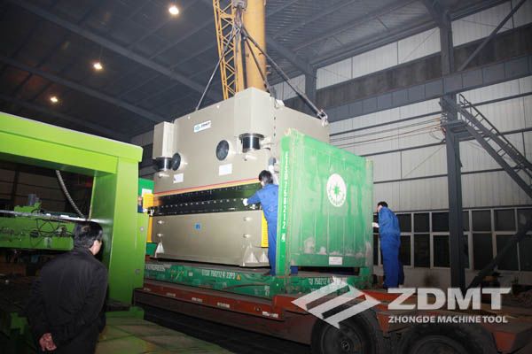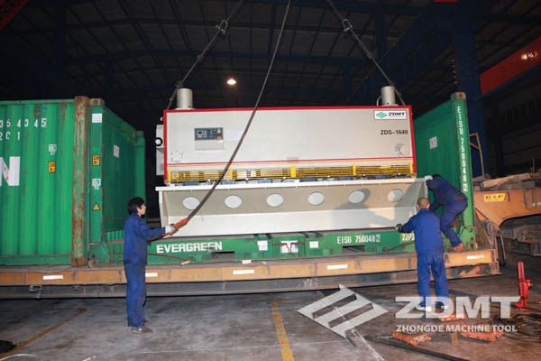 公稱壓力500噸的數(shù)控折彎機和剪切能力16毫米的數(shù)控閘式剪板機分別超過30噸和20噸,外形尺寸完全超過了普通集裝箱的尺寸。像這種類型的機器在國內(nèi)發(fā)貨很平常,但是對于出口來說情況卻完全不同。由于框架箱運輸?shù)奶厥庑砸约昂_\運輸?shù)娘L(fēng)險性,對機器的包裝和捆扎是對工廠的新考驗。